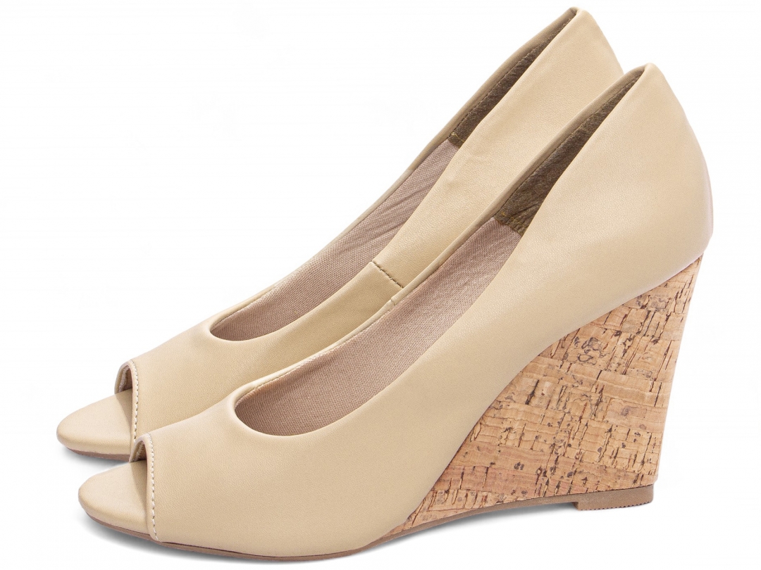 Anabela Plataforma Cunha Feminina Bege [105E]