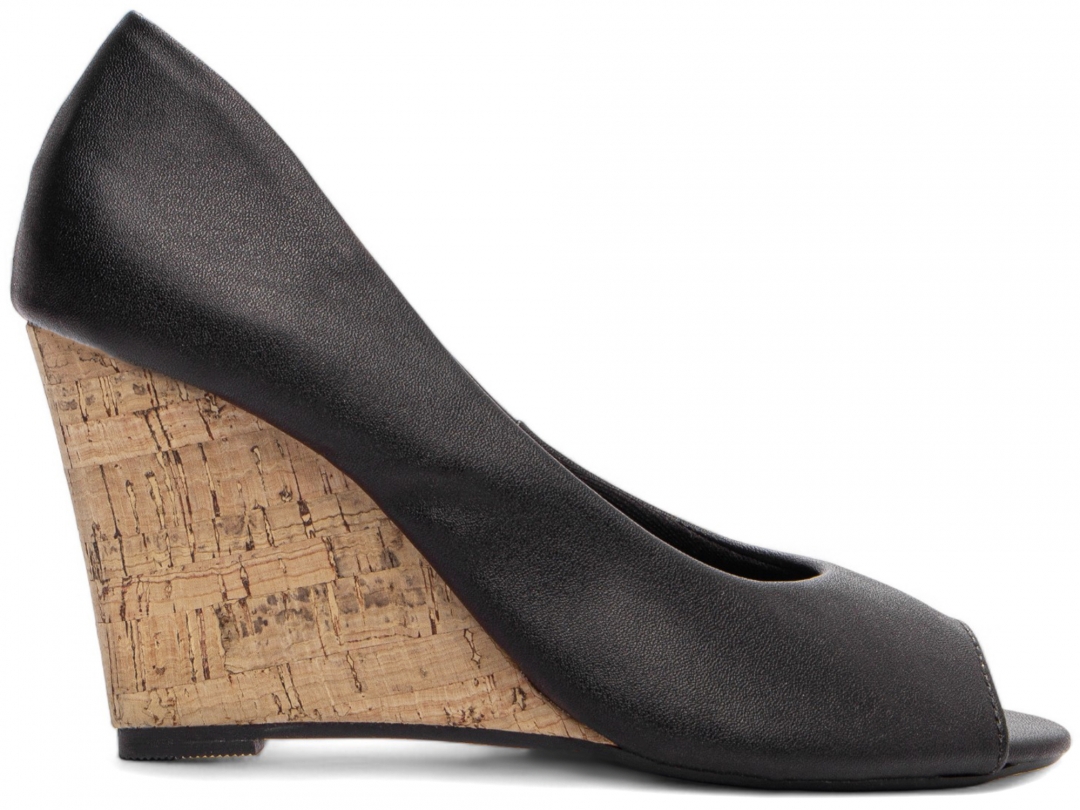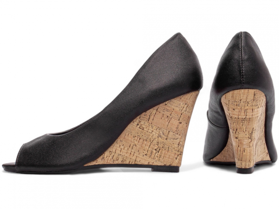 Material: Napa Preto; Palmilha: 4 mm de Espessura, Espuma em EVA, Revestida em Napa Preto e Taloneira Napa Preto; Plataforma: Traseiro / Salto com 8,5 cm de Altura, Revestido em Cortiça; Solado de PVC antiderrapante na cor Preto.