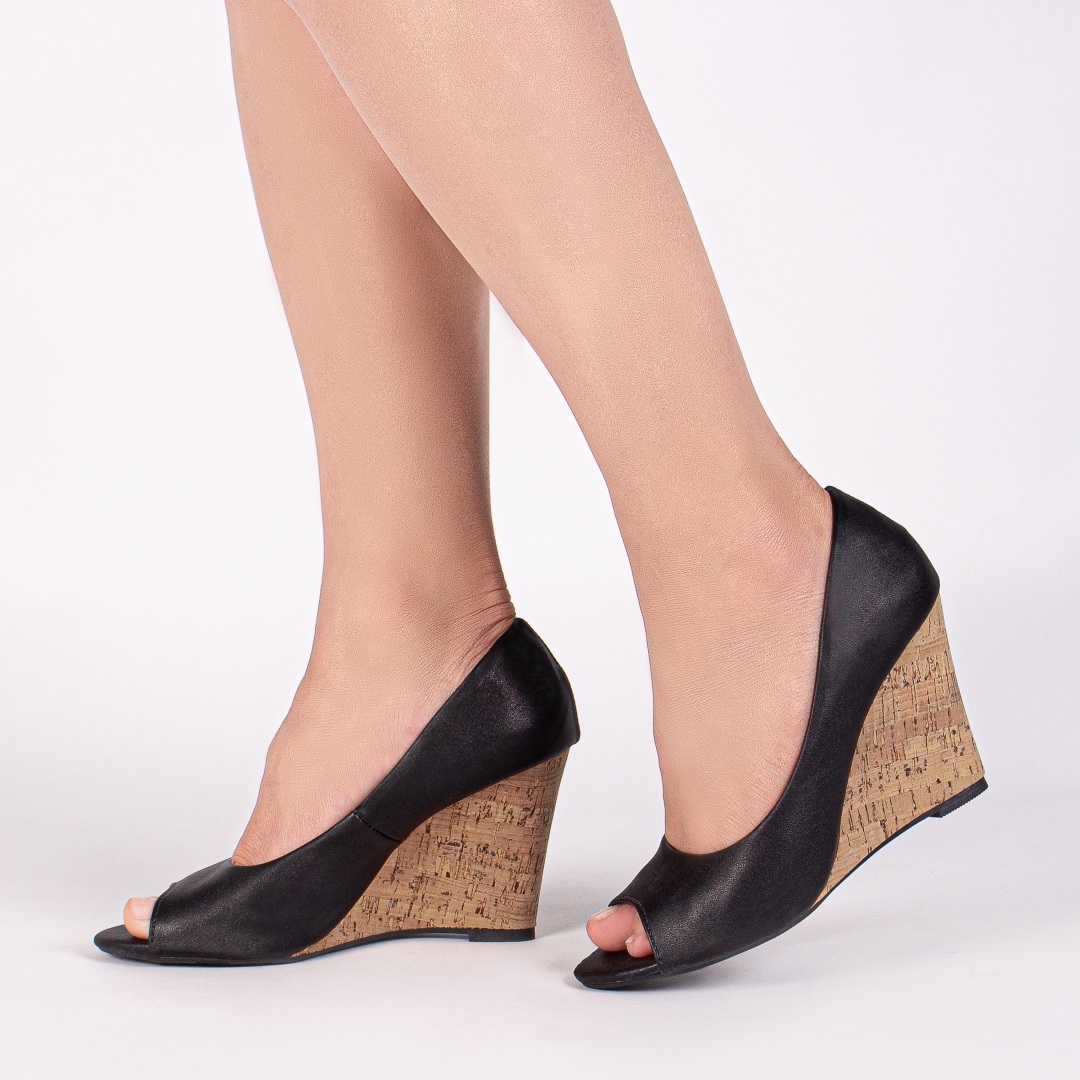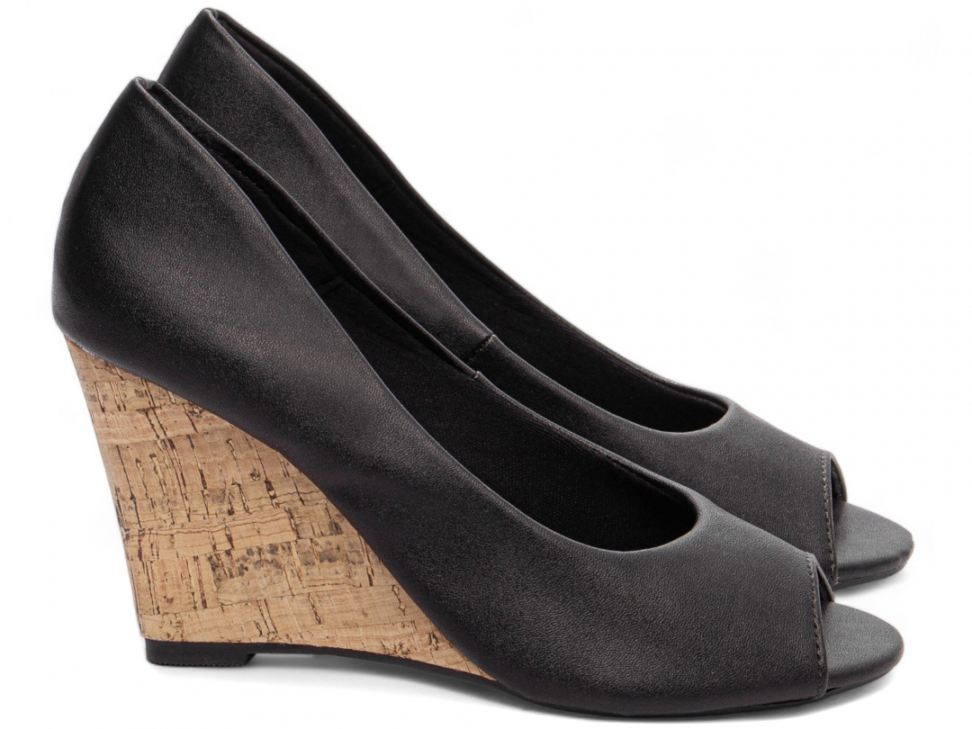 Anabela Plataforma Cunha Feminina Preto [105I]
