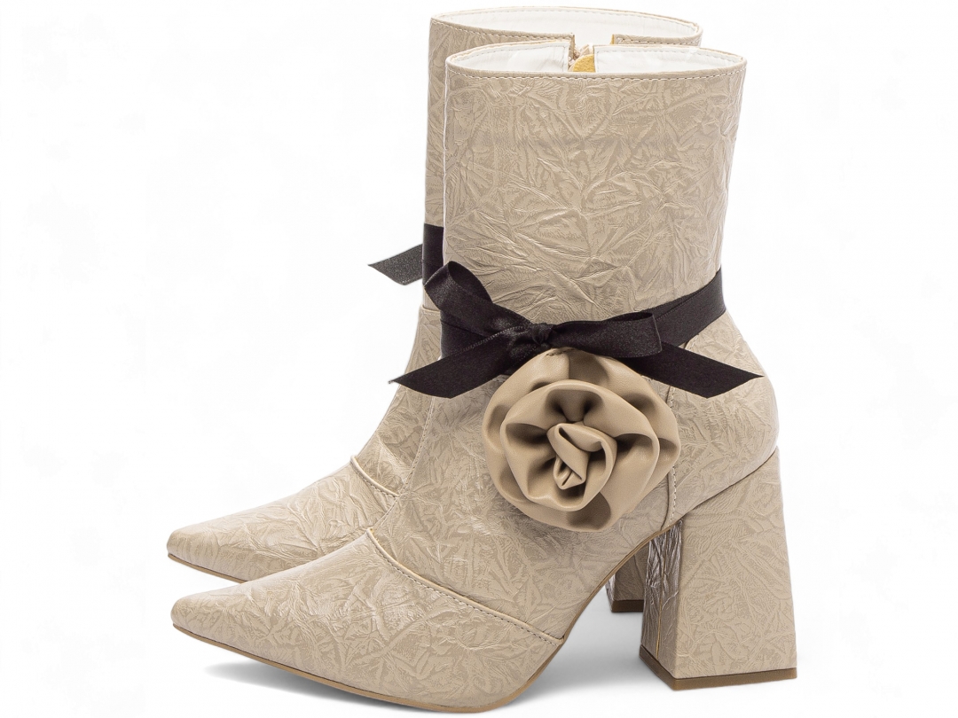 Bota Bico Fino Cano Médio Bege [67069C]