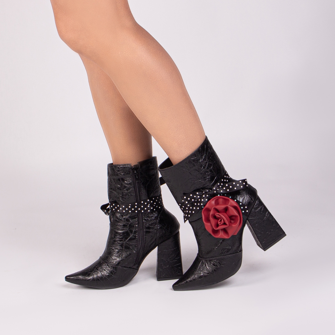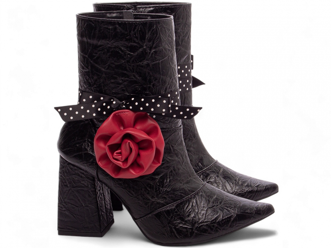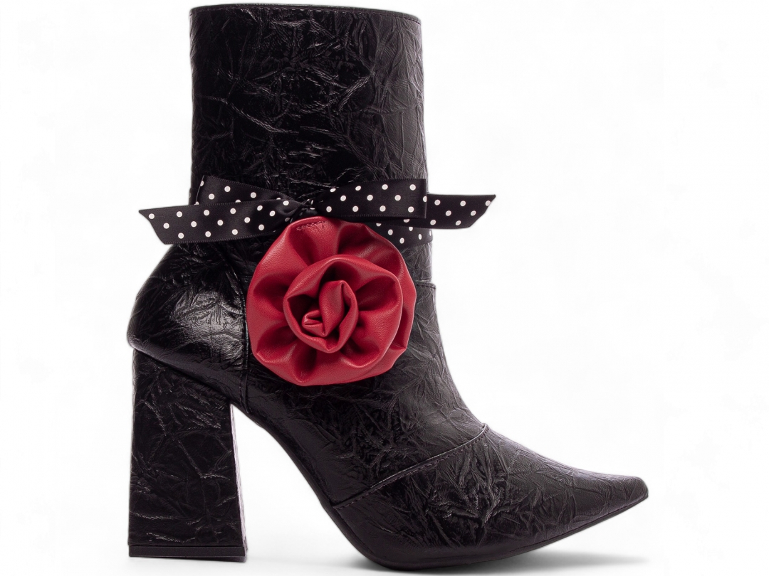 Material: Napa Vintage Preto; Enfeites: Zíper na Cor Preto (lateral interna) e Pulseira Removível com Flor em Napa Vermelho e tira em Poá; Palmilha: 8 mm de Espessura, Espuma em EVA, e Taloneira Napa Preto; Forro: Cacharrel, material espumado para maior conforto, na cor Preto; Salto: 9 cm de Altura e Revestido em Napa Vintage […]
