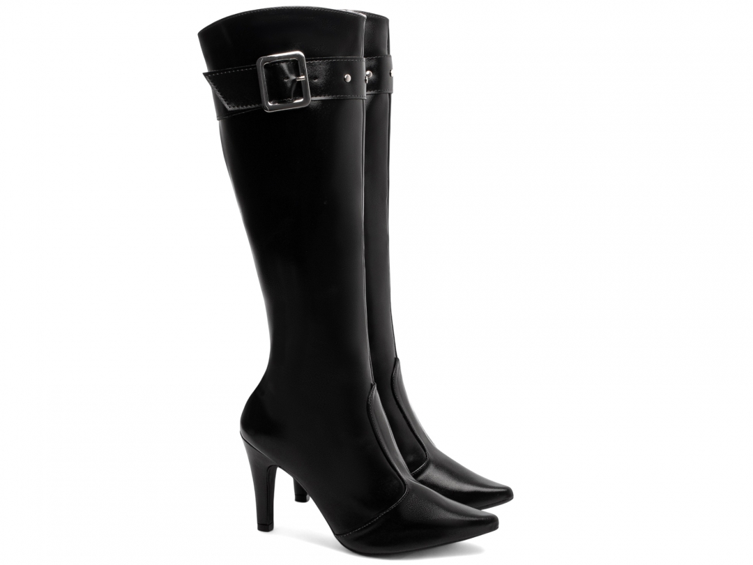 Bota Bico Fino Cano Longo Preto [67096A]