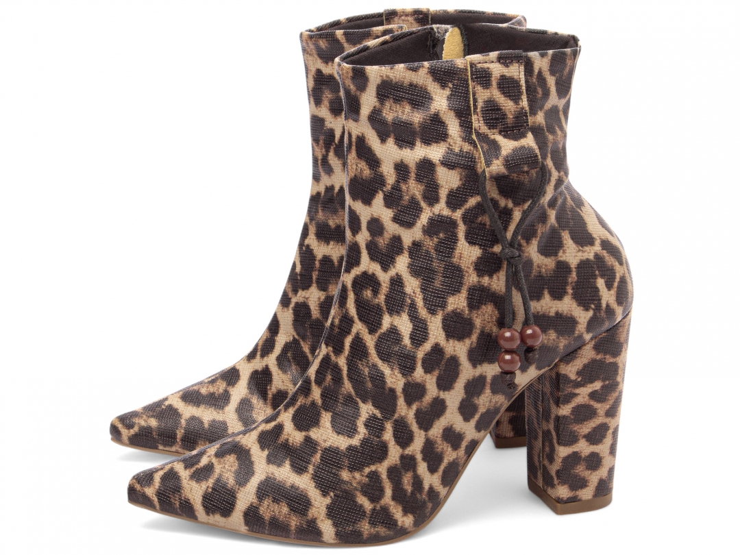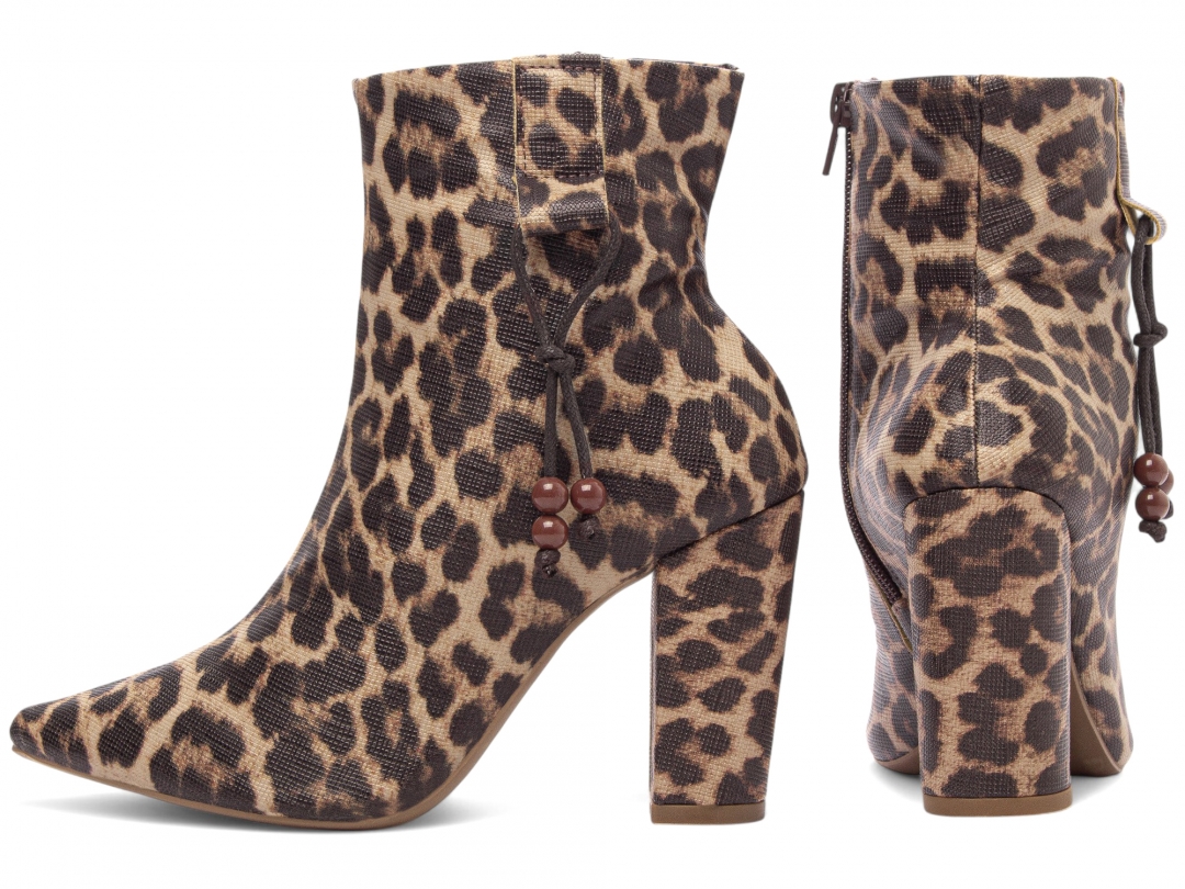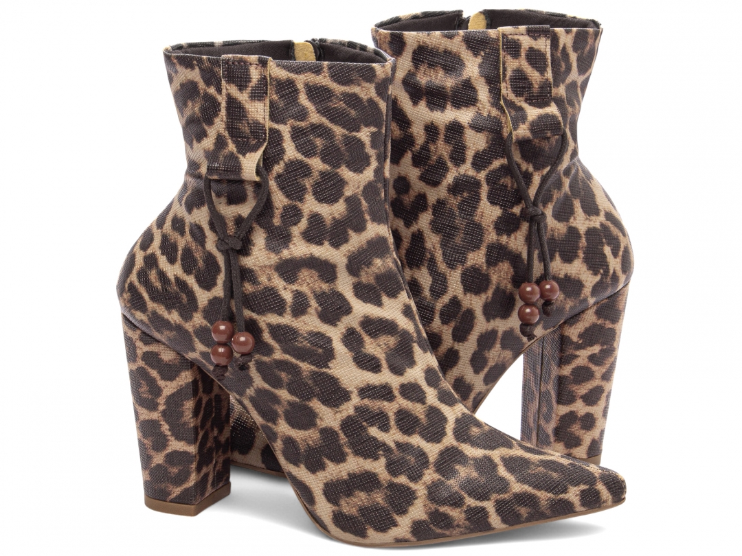Material: Napa Onça; Enfeites: Zíper na cor Marrom (lateral interna) e Cordão Lateral na cor Marrom e Bolinhas na cor Caramelo; Palmilha: 8 mm de Espessura, Espuma em EVA, e Taloneira Napa Preto; Forro: Cacharrel, material espumado para maior conforto na cor Marrom; Salto: 9 cm de Altura encapado em Napa Onça; Solado de PVC […]