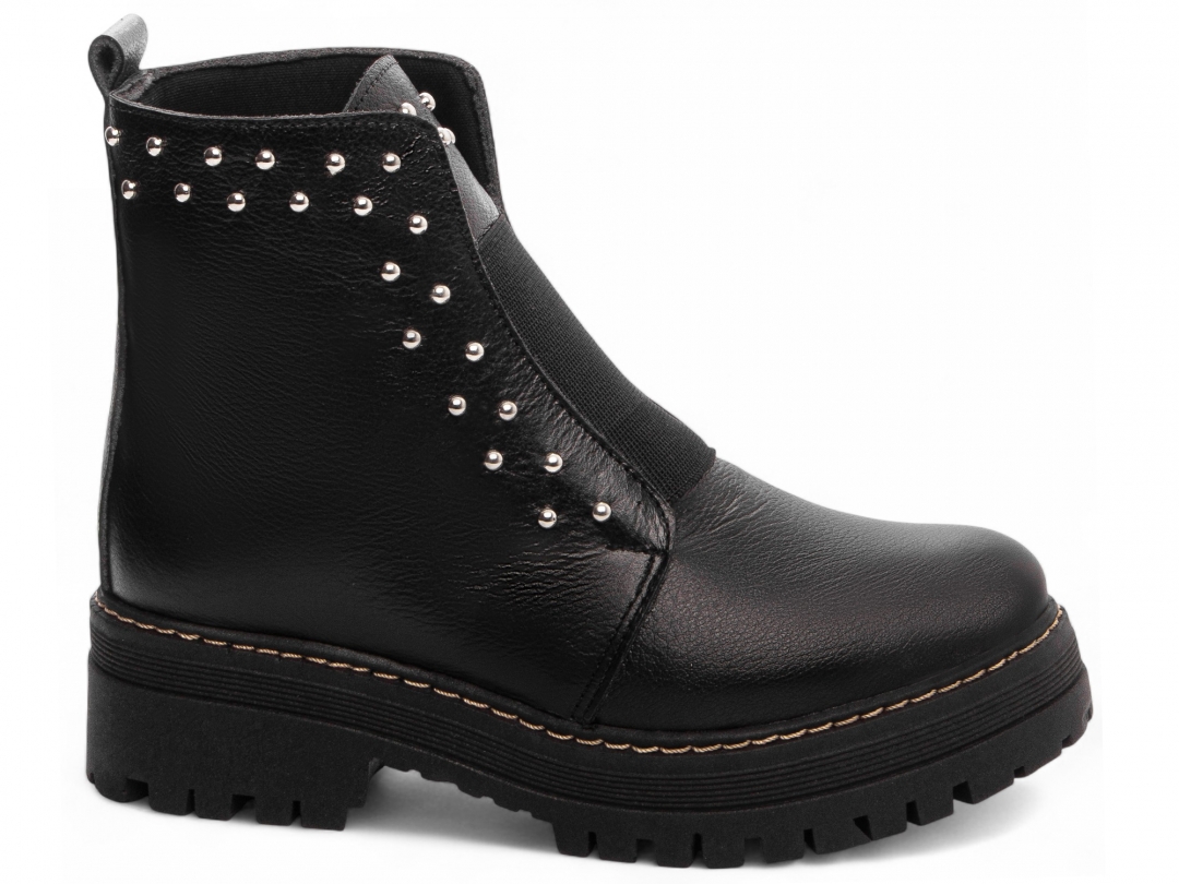 Material: Couro Preto; Enfeites: Elastico na Cor Preto e Apliques na Cor Prata; Palmilha: 8 mm de Espessura, Espuma em EVA, e Taloneira Preto; Forro: Cacharrel, material espumado para maior conforto, na cor Preto; Solado Tratorado Preto.