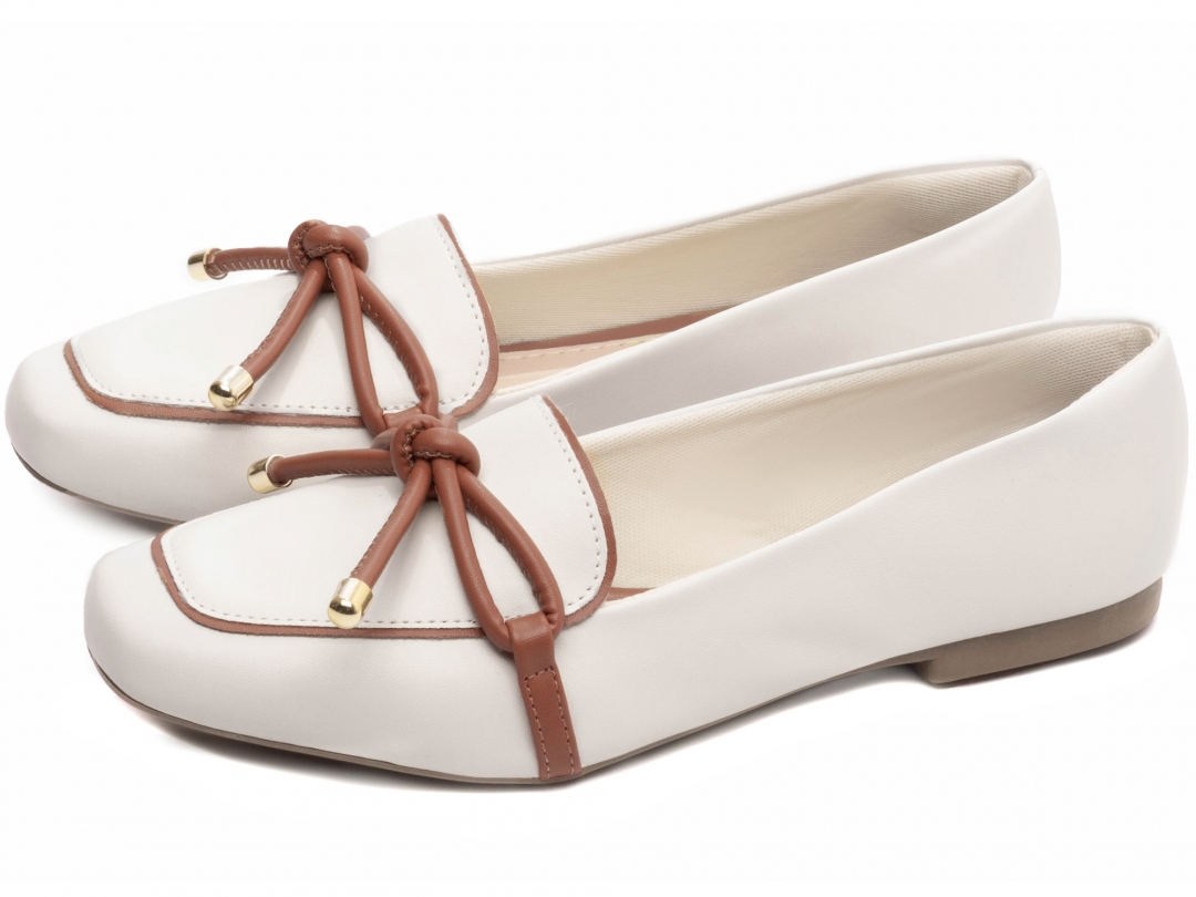 Mocassim Feminino Rasteiro Off White [456.012D]