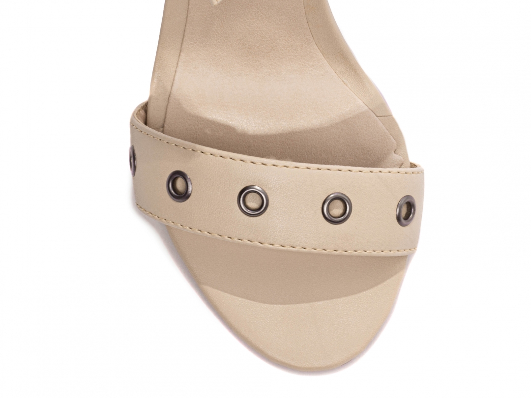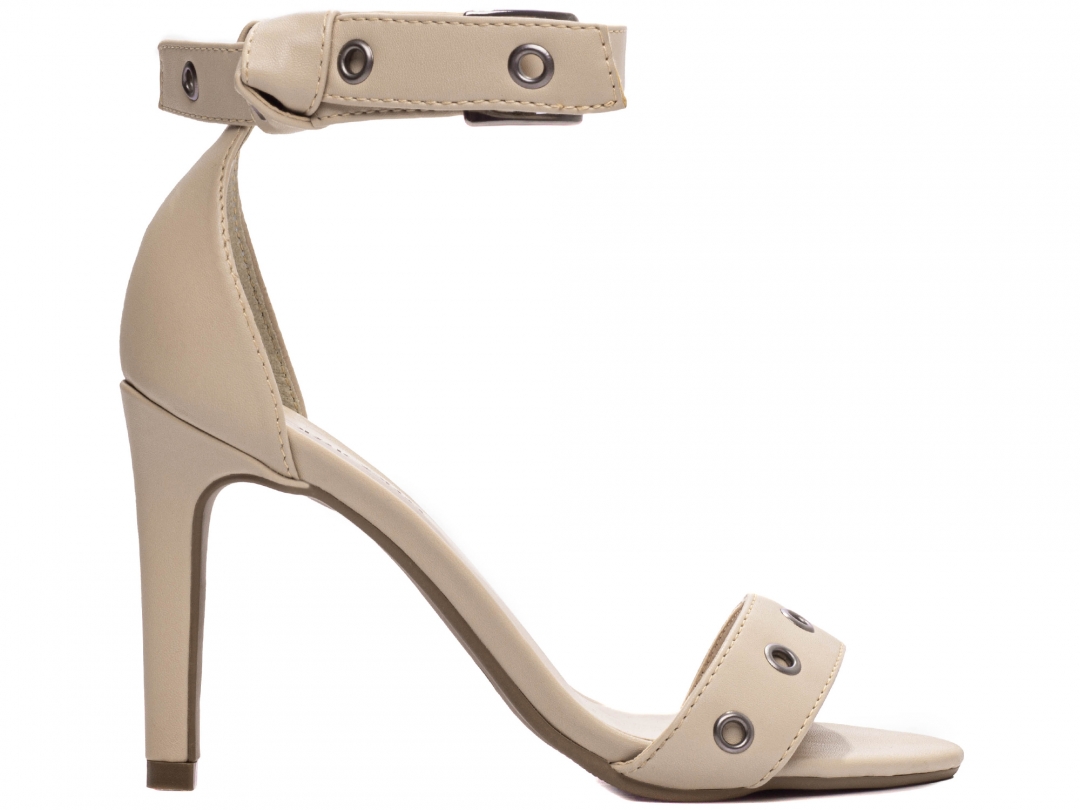 Material: Napa Bege; Palmilha: 8 mm de Espessura, Espuma em EVA, Revestida em Napa Bege e Taloneira Napa Bege; Enfeite: Fivela de Ajuste na Cor Grafite e Ilhós na cor Grafite; Salto: 9,5 cm de Altura Revestido em Napa Bege; Solado de TR na cor Bege.