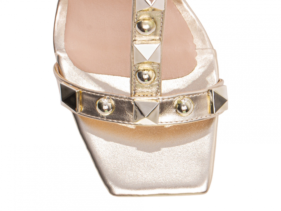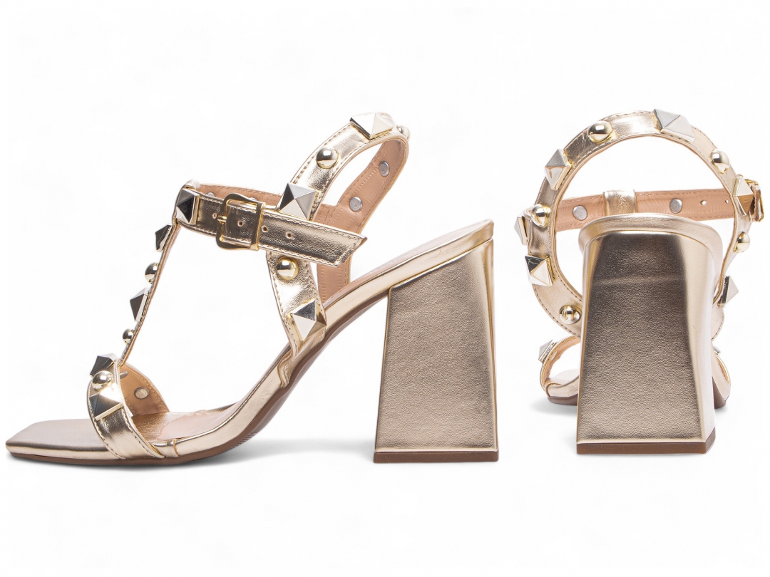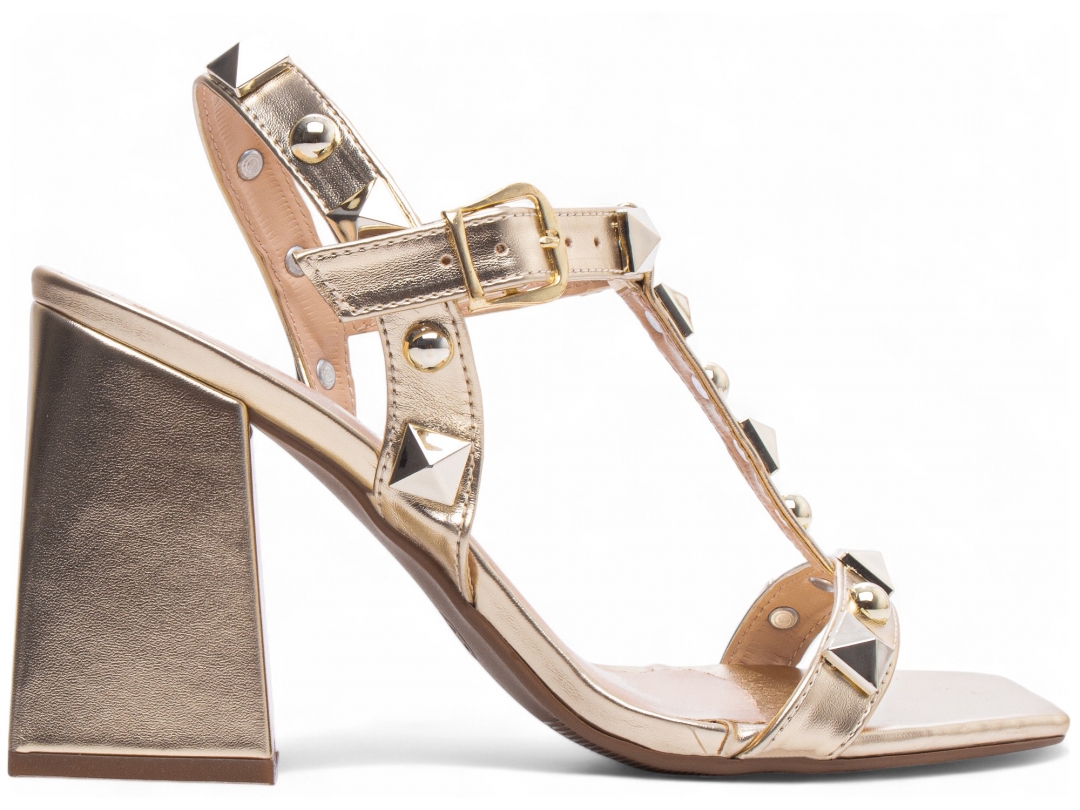 Material: Napa Ouro Ligth; Enfeite: Apliques em formato de Pirâmides e Bolinhas em ABS na cor Dourado e Fivela de Ajuste na Cor Dourado; Palmilha: 8 mm de Espessura, Espuma em EVA, Revestida em Napa Ouro Ligth e Taloneira Napa Bege; Salto: Grosso com 9 cm de Altura Revestido em Napa Ouro Ligth; Solado de […]
