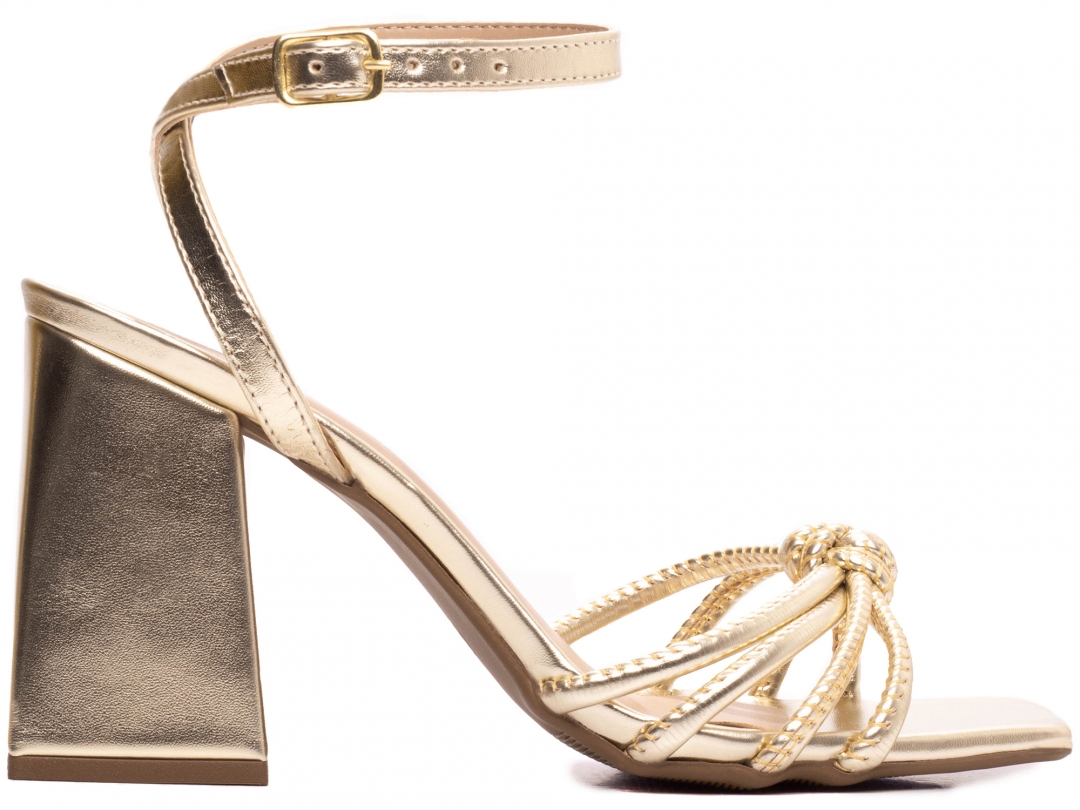 Salto: Grosso com 9 cm de Altura Revestido em Napa Metalizado Ouro Light;
