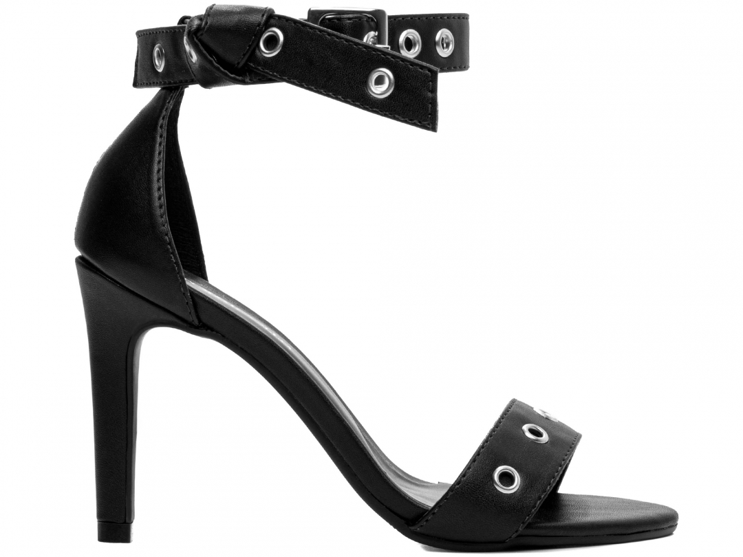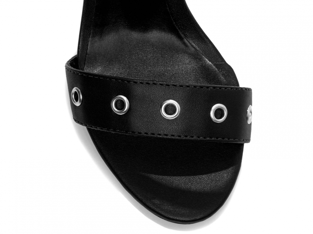 Material: Napa Preto; Palmilha: 8 mm de Espessura, Espuma em EVA, Revestida em Napa Preto e Taloneira Napa Preto; Enfeite: Fivela de Ajuste na Cor Prata e Ilhós na cor Prata; Salto: 9,5 cm de Altura Revestido em Napa Preto; Solado de TR na cor Preto.