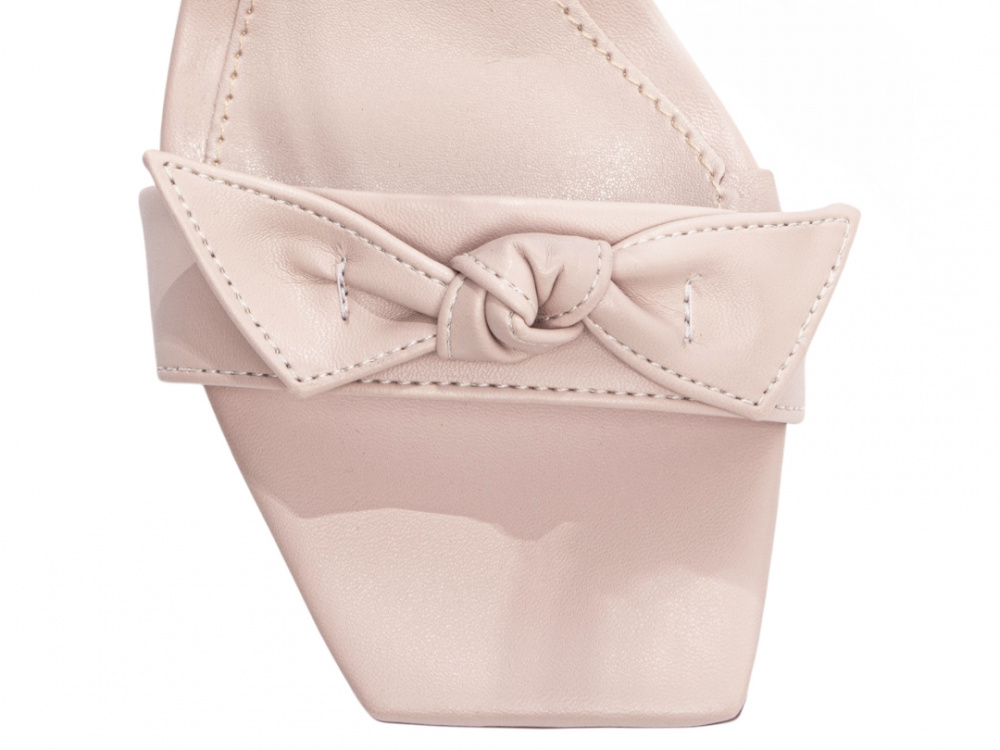 Material: Napa Rose; Enfeite: Tira Laço Nó em Napa Rose e Laço em Napa Rose; Palmilha: 8 mm de Espessura, Espuma em EVA, Revestida em Napa Rose e Taloneira Napa Bege; Salto: 8,5 cm de Altura e Revestido em Napa Rose; Solado de PVC com antiderrapante na cor Bege.