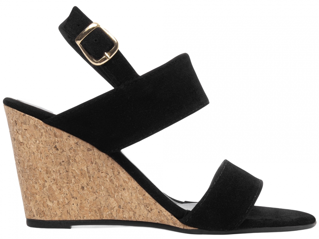 Material: Camurção Preto; Enfeite: Fivela de Ajuste na cor Dourado; Palmilha: 4 mm de Espessura, Espuma em EVA, Revestida em Camurção Preto e Taloneira Napa Preto; Plataforma: Traseiro/Salto com 7 cm de Altura, Revestido em Cortiça; Solado de PVC na cor Preto.