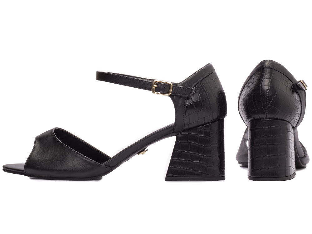 Salto Grosso: 7 cm de altura Enfachetado em Croco Preto;