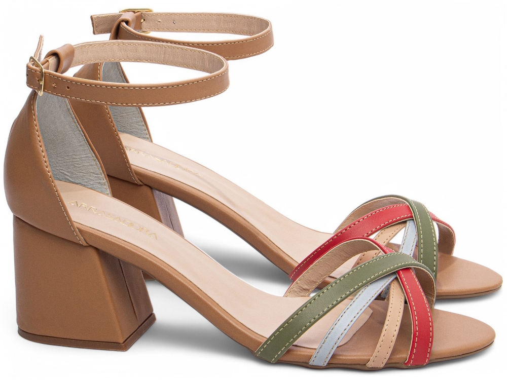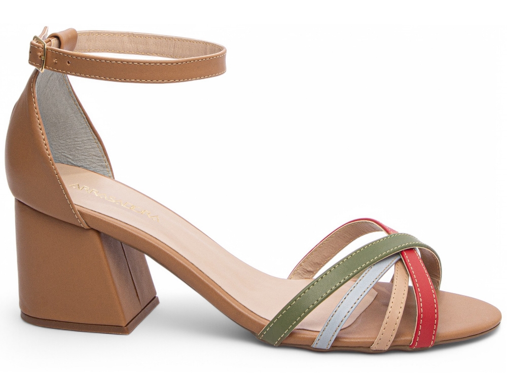 Sandália Salto Bloco Grosso Baixo Caramelo [4000-17B_AR]