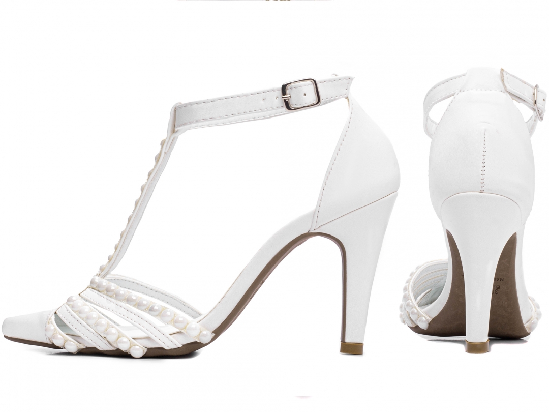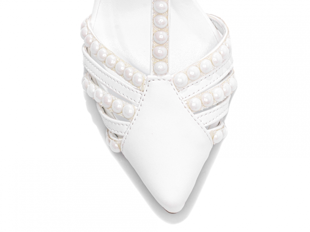 Material: Napa Branco; Enfeite: Pérolas Brancas em ABS; Palmilha: 8 mm de Espessura, Espuma em EVA, Revestida em Napa Branco e Taloneira Napa Branco; Salto: 9 cm de Altura Revestido em Napa Branco; Solado de TR coletado na cor Bege.