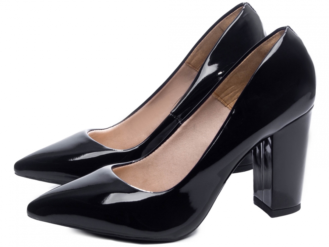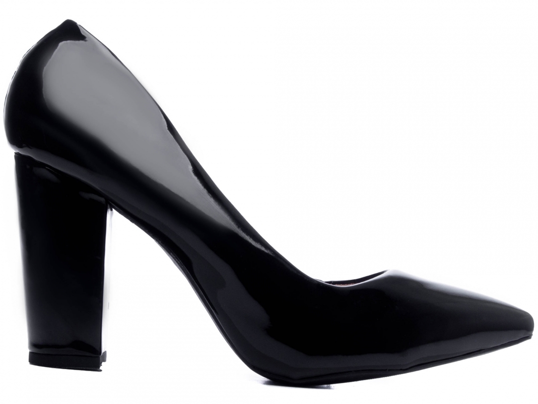 Salto: 8,5 cm de Altura encapado em verniz Preto;