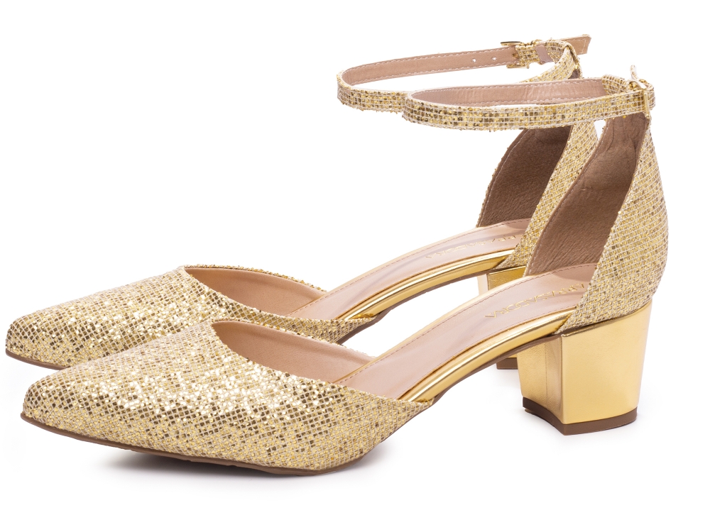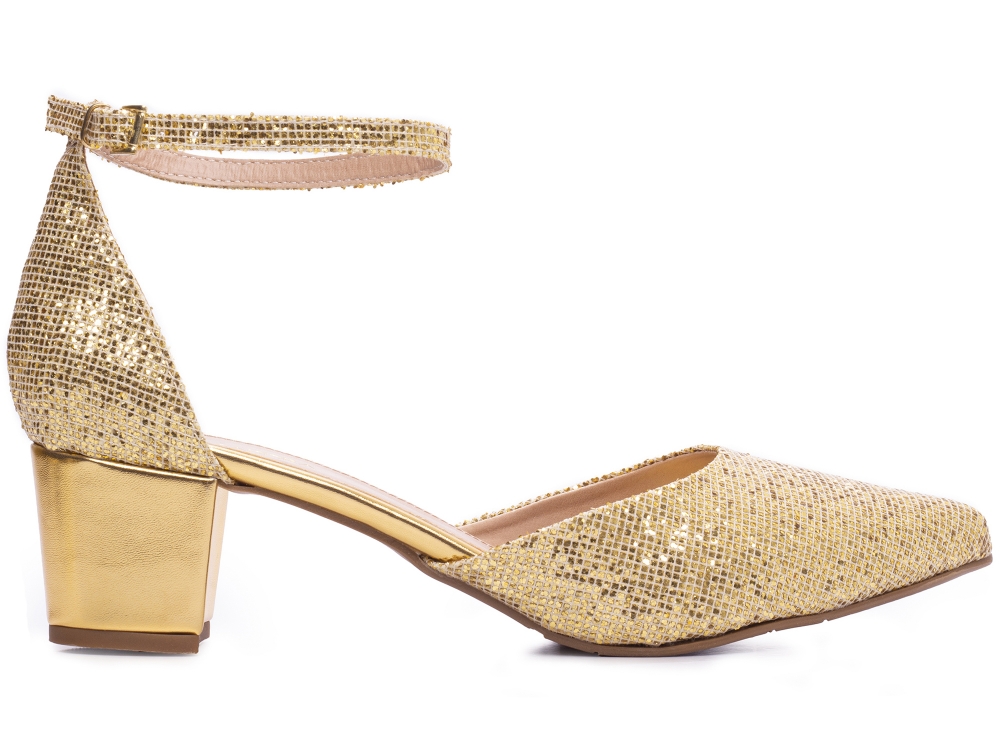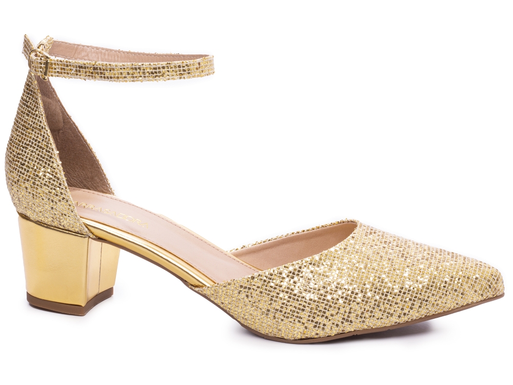 Sapato Scarpin Salto Bloco Grosso Baixo Arrasadora Dourado [044-1710-117E_AR]