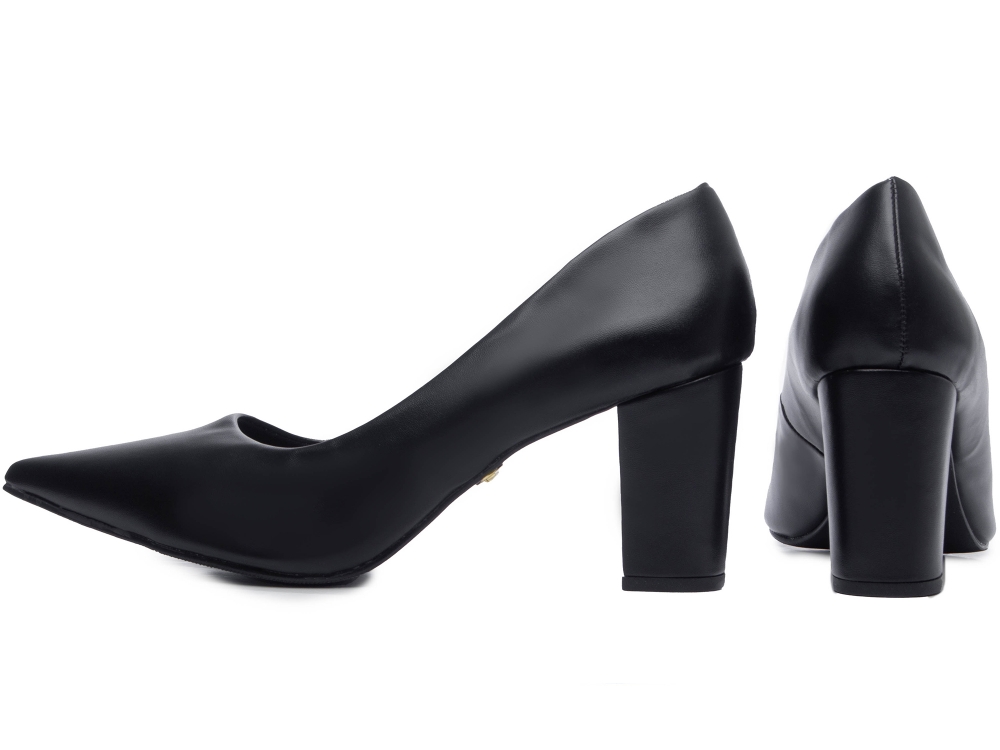 Sapato Scarpin Salto Bloco Grosso Preto [8000-02F_AR]